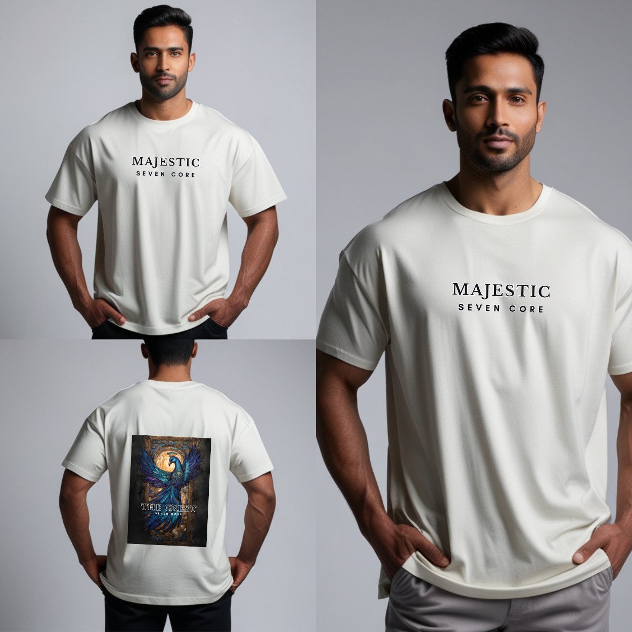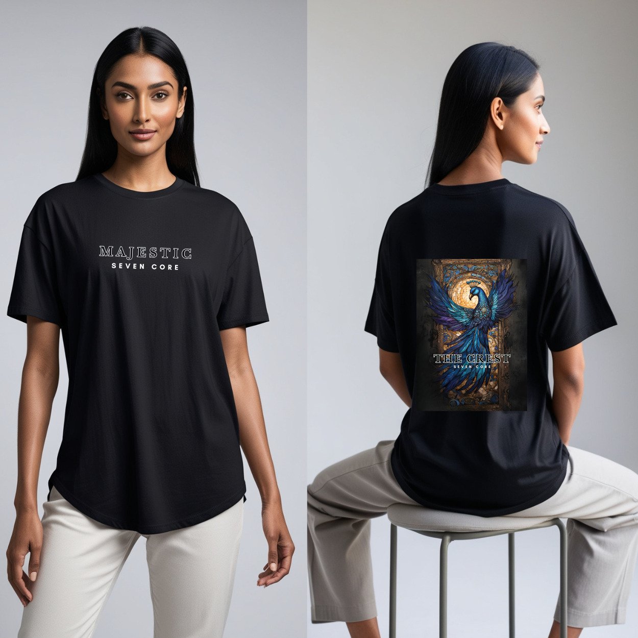 Be the first to review “Seven Core Oversized Unisex T-Shirt – “Regal Peacock Sapphire” Adorn yourself in myth — where royalty takes flight.”